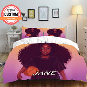 African American Basketball Baby Black Girl Custom Name Duvet Cover Bedding Set